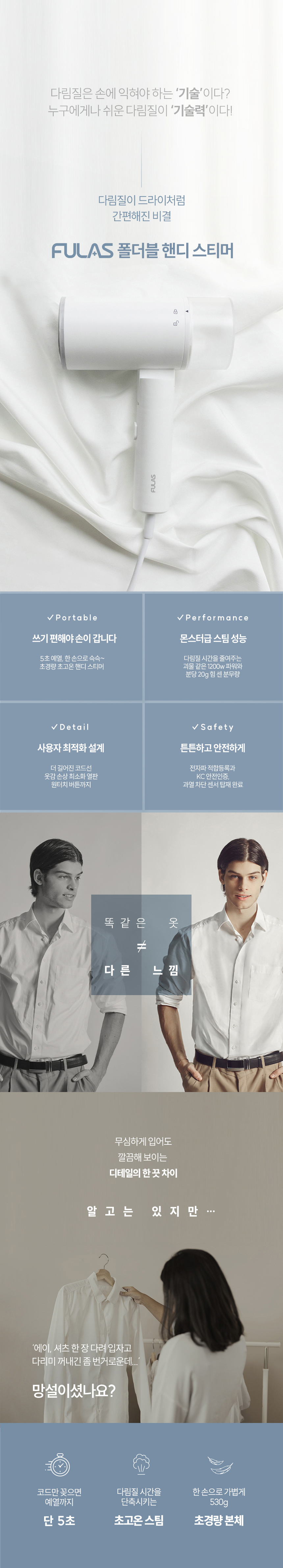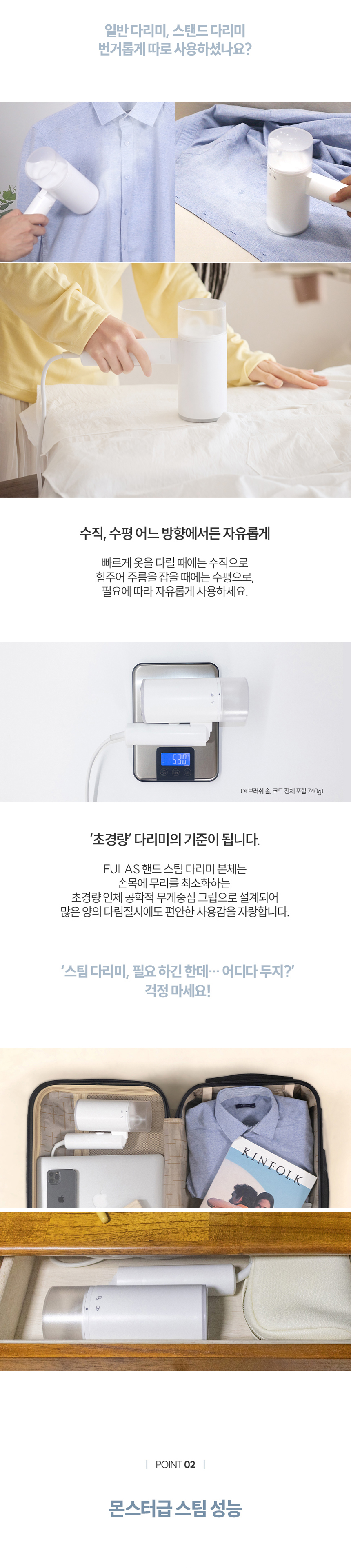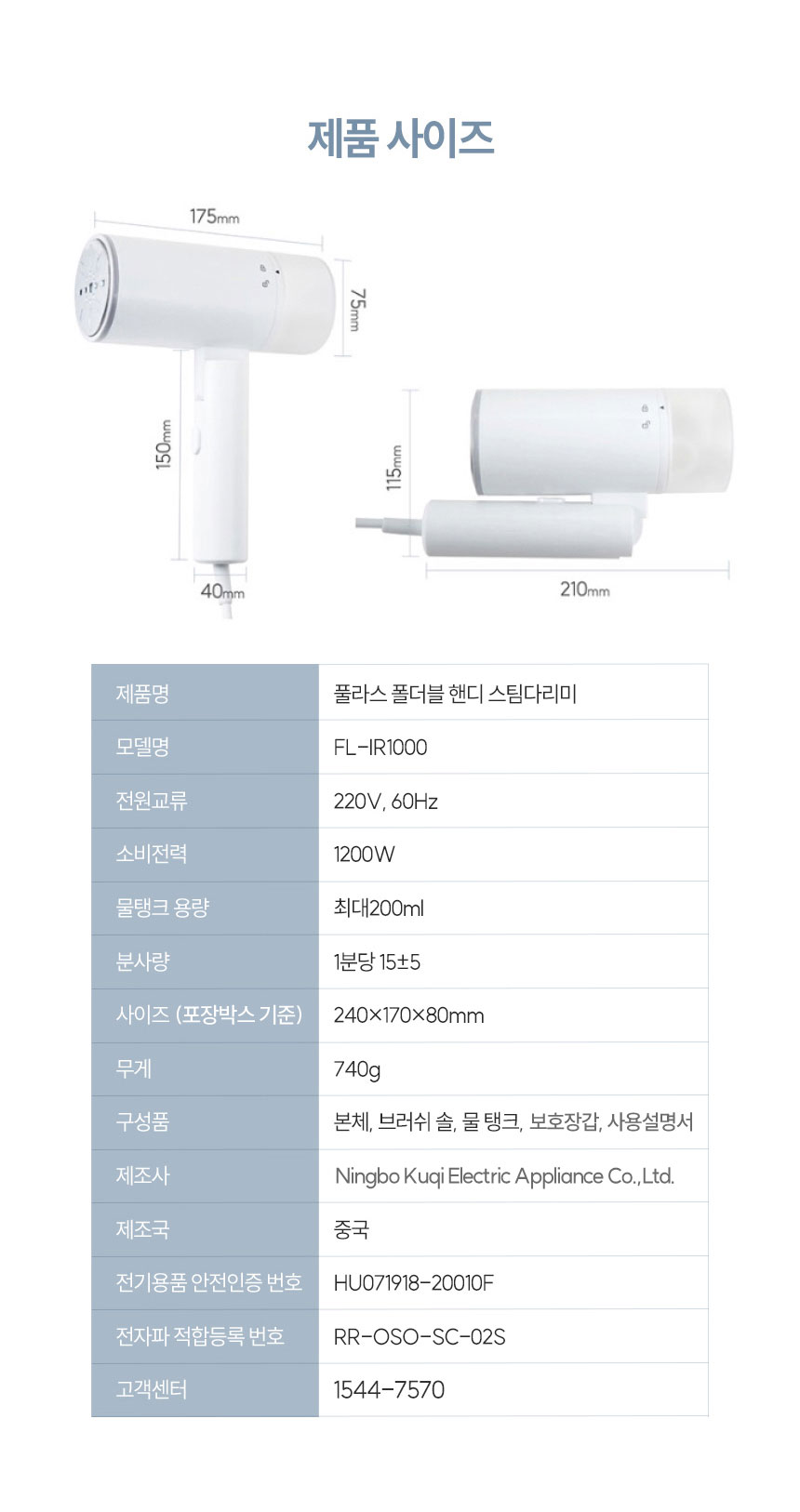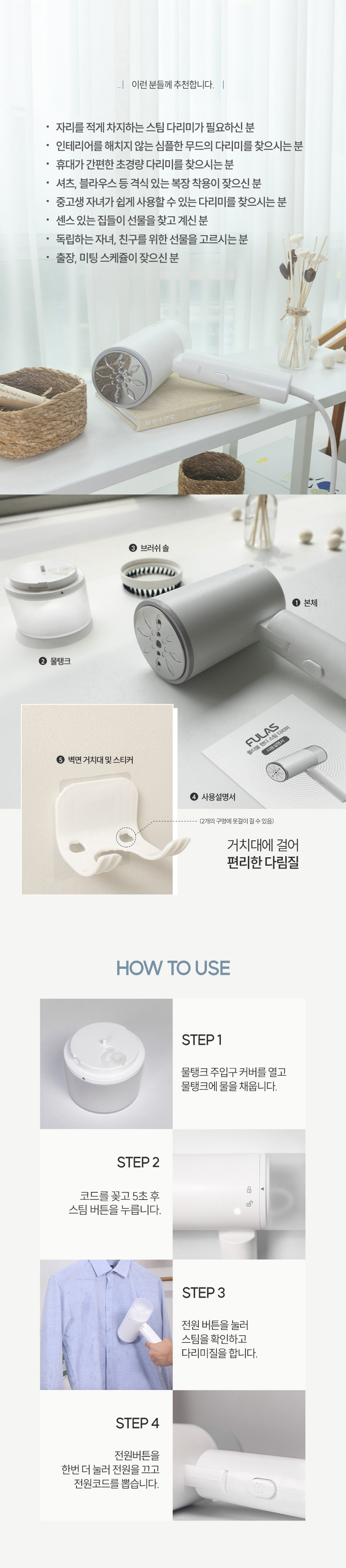 [풀라스] 여행용 휴대용 핸디형 스티머 미니 스팀다리미 FL-IR1000