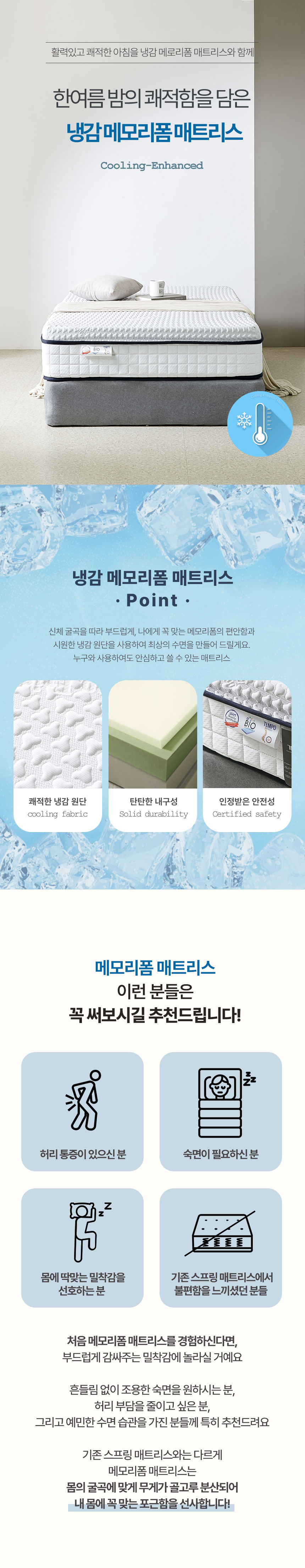 [풀오브빈스] 국내 제작 냉감 쿨링 아이스 고밀도 메모리폼 매트리스