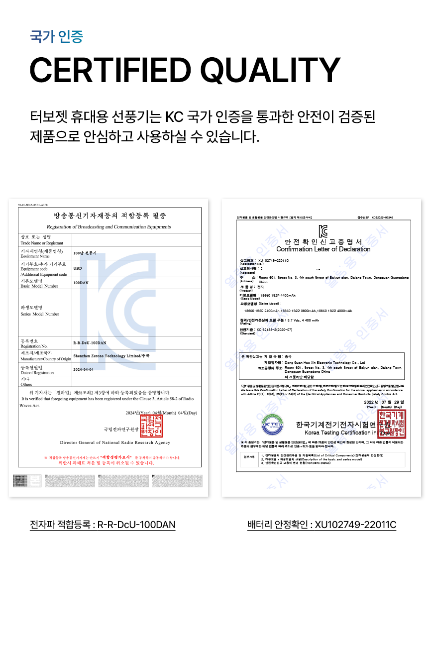 • KC 인증정보 (「전기용품 및 생활용품 안전관리법」에 따른 안전인증ㆍ안전확인ㆍ공급자적합성확인대상제품 및 「전파법」에 따른 적합인증ㆍ적합등록 대상 기자재에 한함)