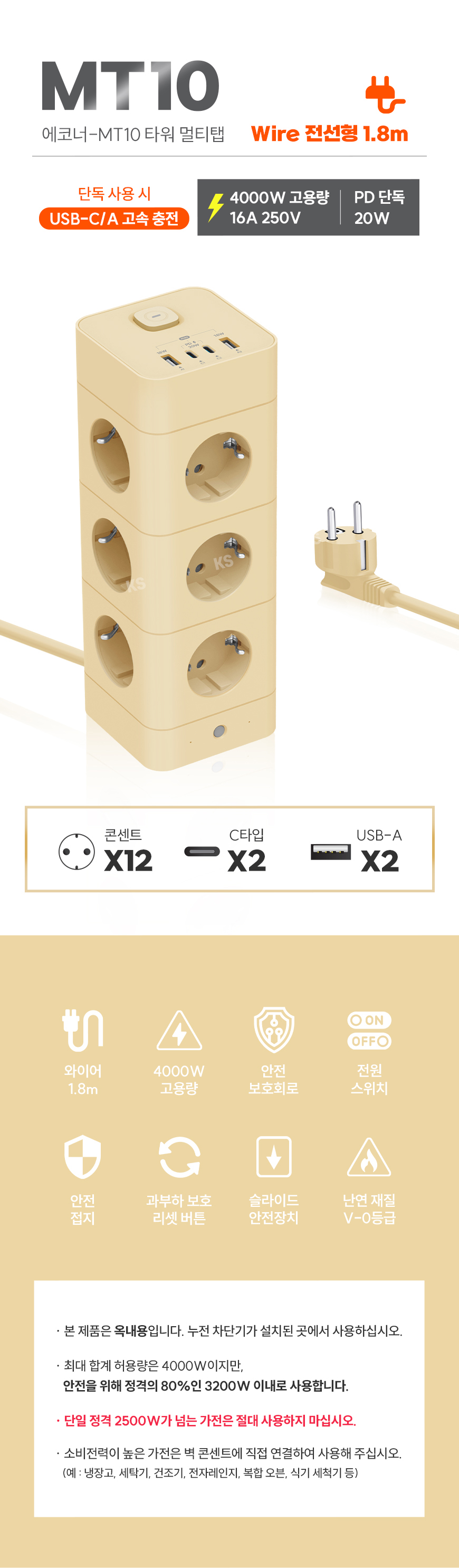 에코너-MT10 타워멀티탭 전선형 1.8m