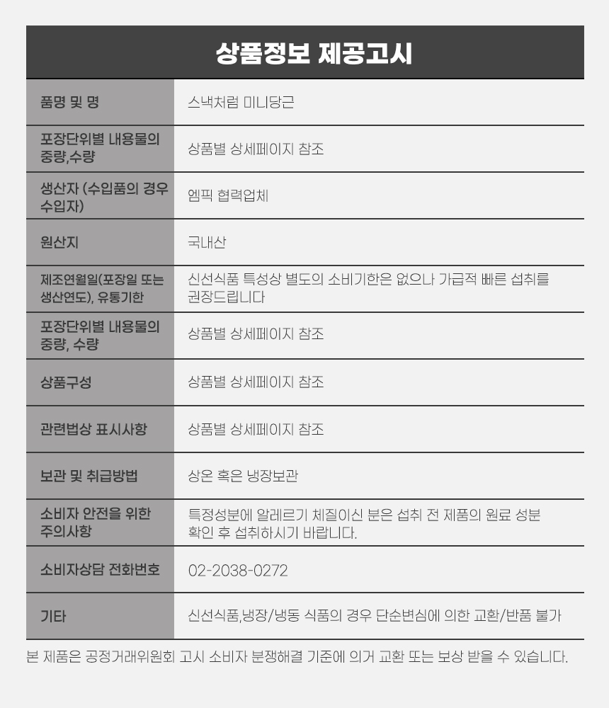 - 신선식품의 경우 재판매가 불가능한 제품 특성상 단순변심 및 개인적 입맛 차이로 인한 반품은 불가능하며 제품 수령 후 문제가 있는 경우 이상부분 사진 촬영하여 수령하신 날짜 기준 2일 이내 연락해주셔야합니다.(기일은 업체별 상이할 수 있으니 수령즉시 연락 부탁드리겠습니다.)