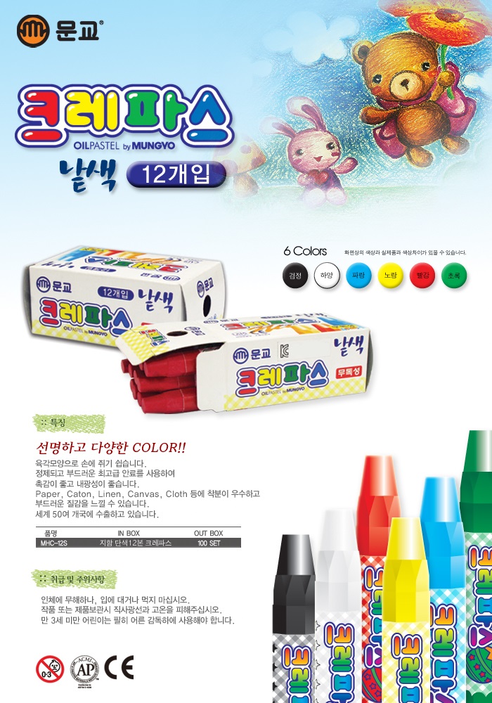 [문교]단색크레파스 노랑 12본 문교