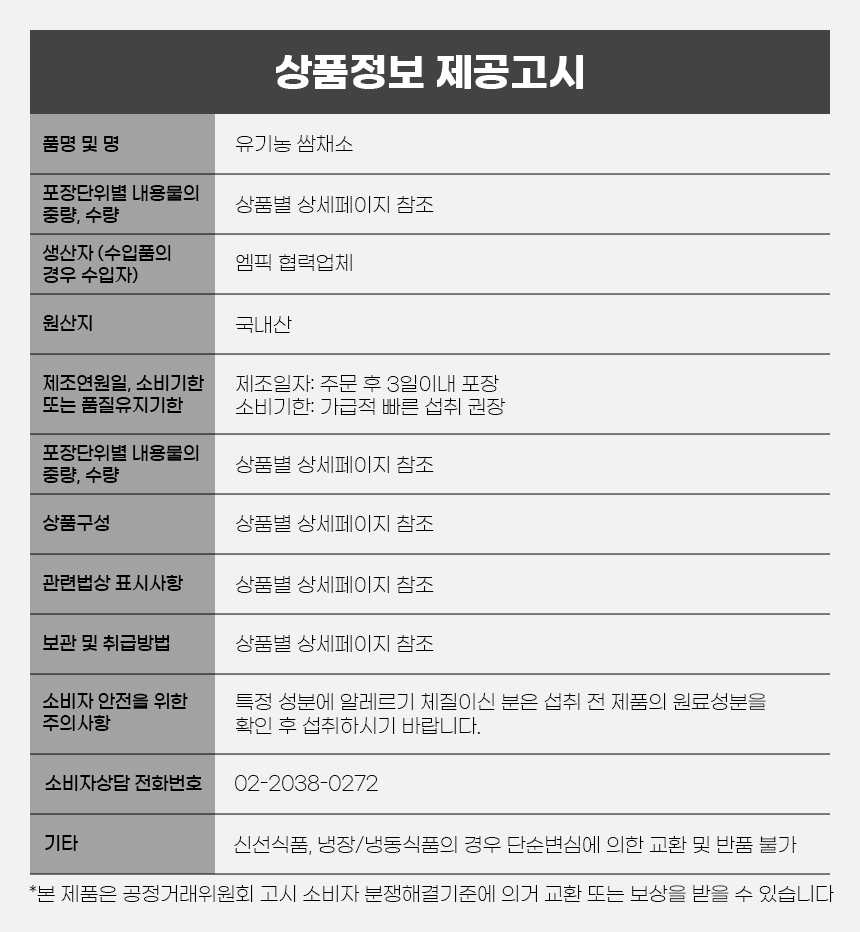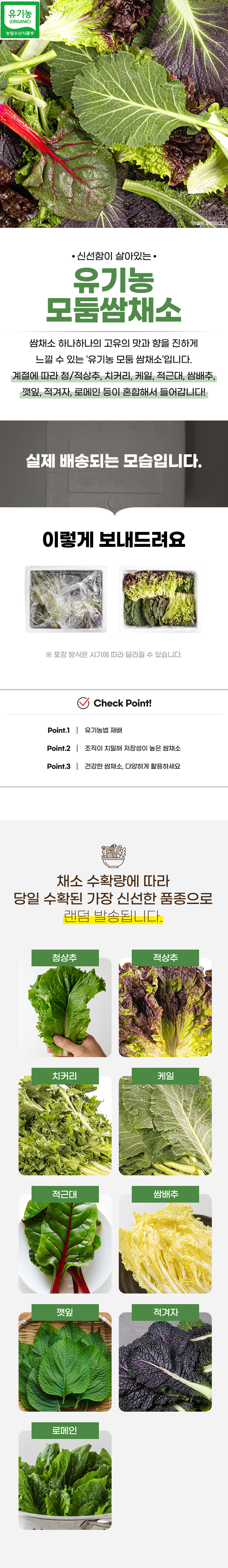 - [엠픽] 다채로운 구성의 유기농 모둠 쌈채소 600g(혼합)