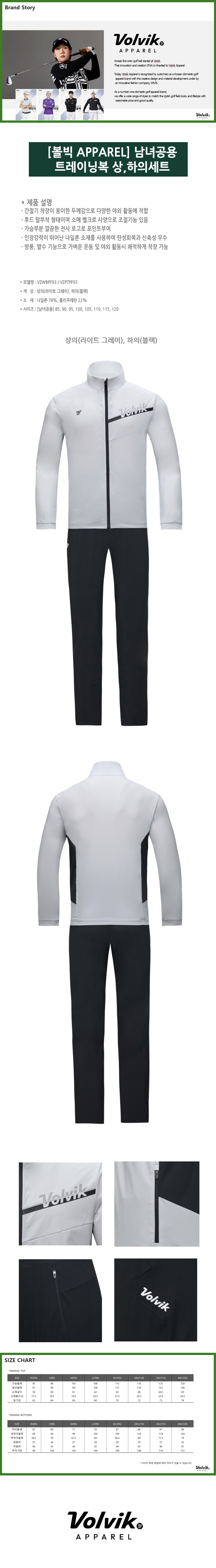 [볼빅 APPAREL] 남녀공용 트레이닝복 상,하의 세트 (VZWBPF93/VZPTPF93)