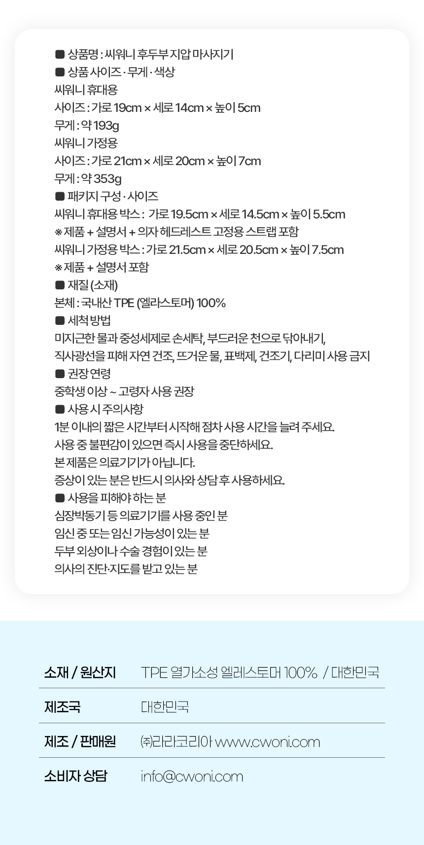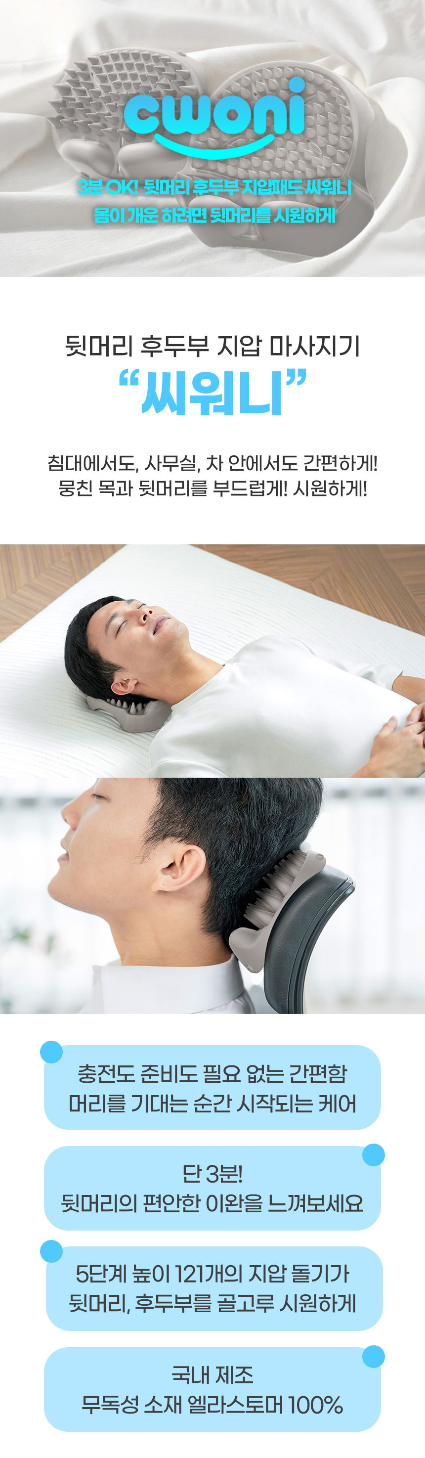 [씨워니] 뒷머리 후두부 마사지 지압패드(휴대용)