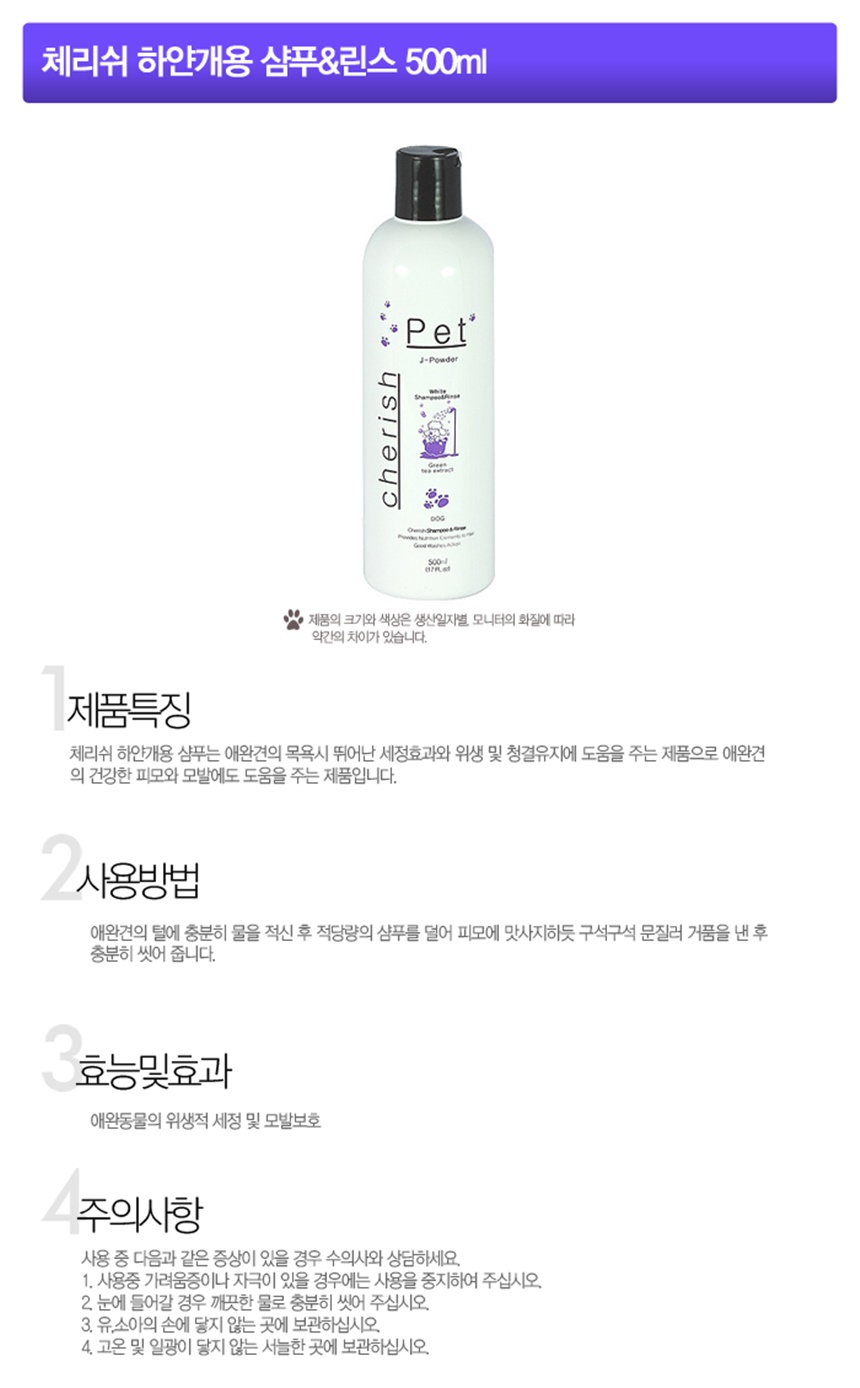 [체리쉬] 샴푸&린스 500ml 흰개전용