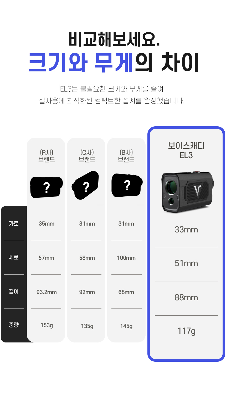 [26년신상]보이스캐디 EL3 초미니/초경량 볼투핀기능 레이저거리측정기+파우치