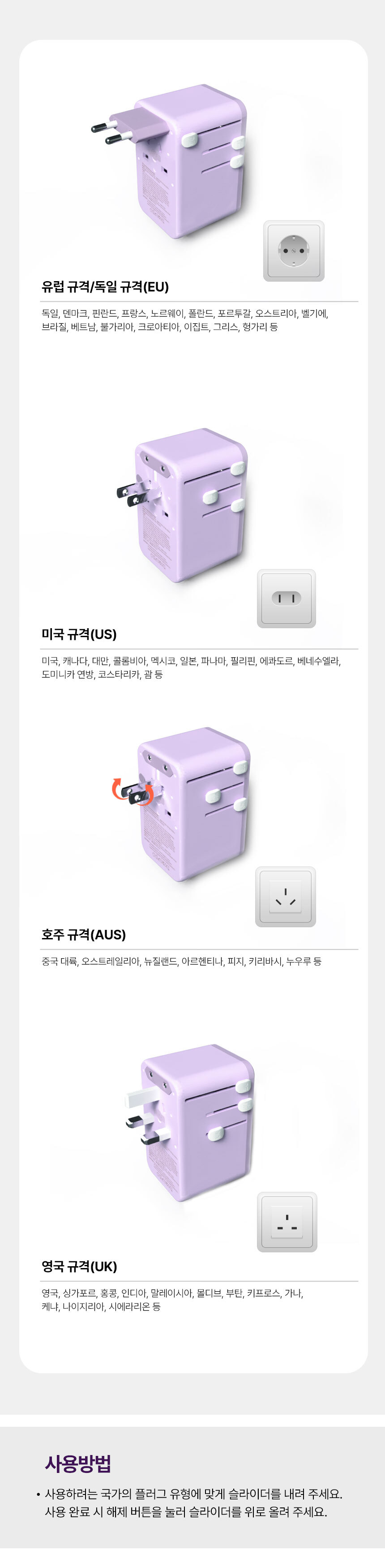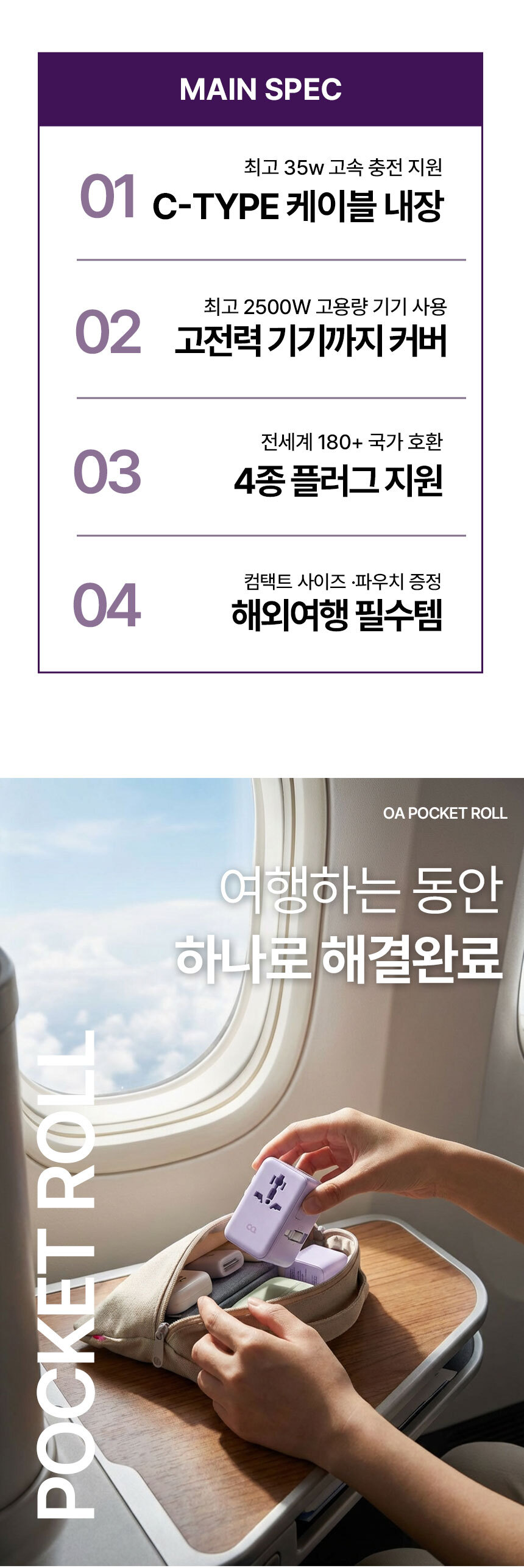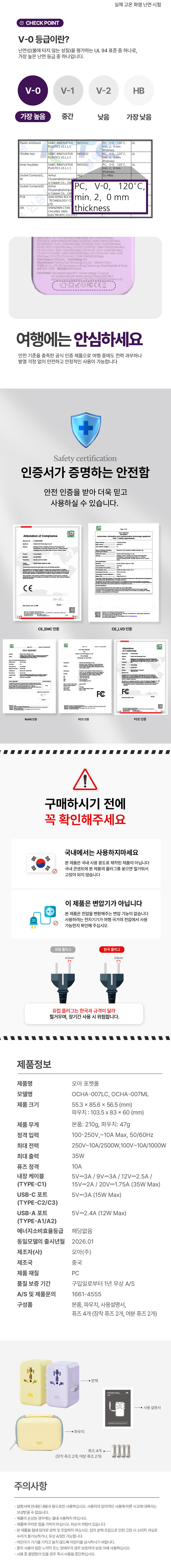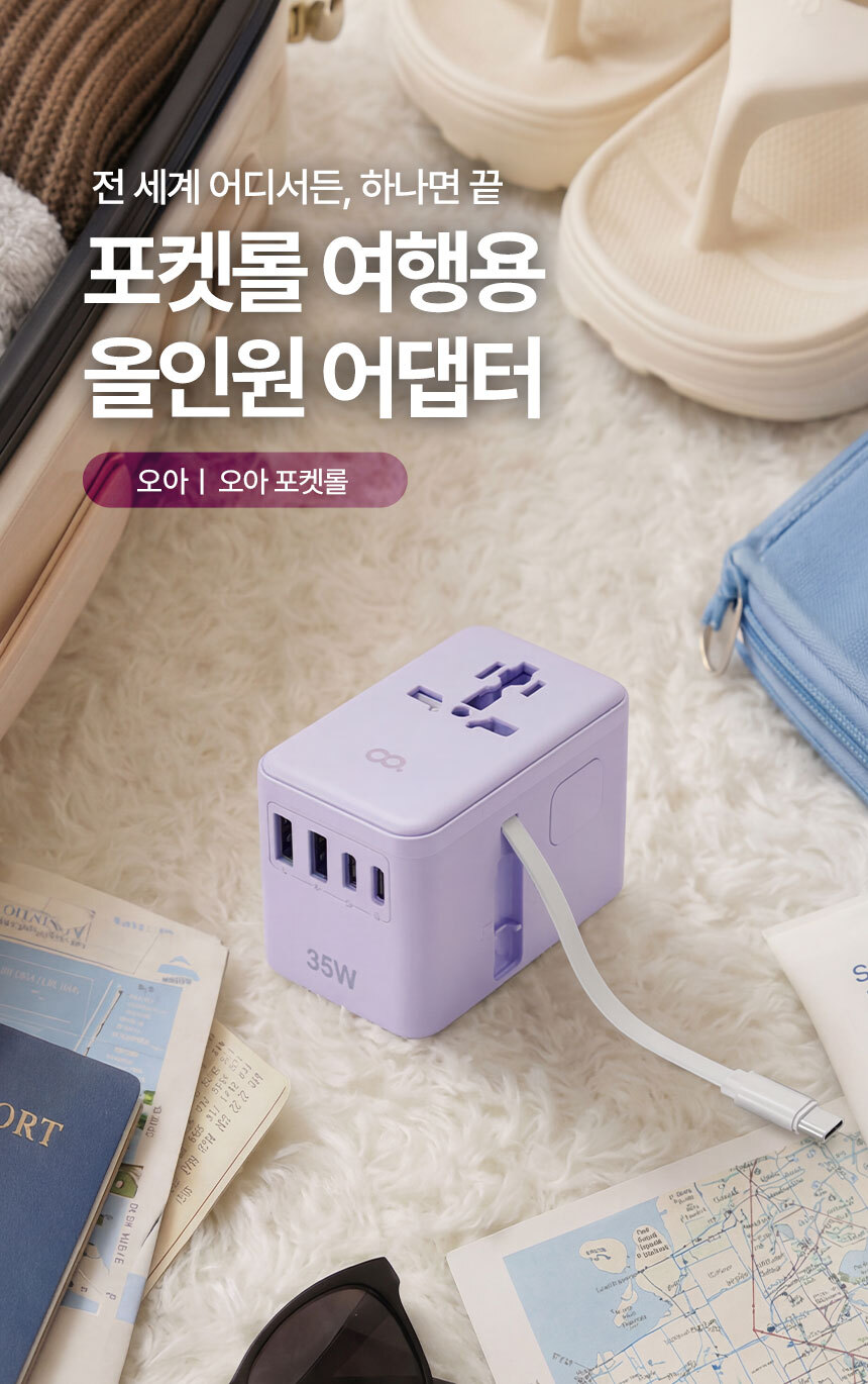 오아 포켓롤 멀티 어댑터 해외 여행용 멀티탭 콘센트 휴대용 고속충전 변압기 돼지코 플러그 전세계 미국 유럽